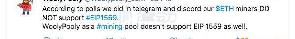 1月19日,WoolyPooly宣布反對EIP-1559,官方表示在telegram和Discord社群中,礦工們并不支持EIP-1559。