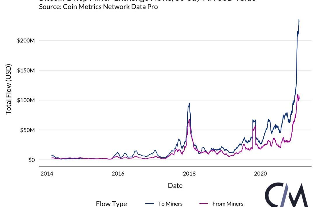 對礦工-交易所流量的理解最好是在其組成流動的背景下進行。為了了解礦工-交易所流動的規模,將其與礦工總流量和交易所總流量進行比較是有幫助的。