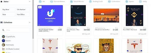以太坊已經有了許多像OpenSea和Rarible等常規NFT平臺,這些市場集合了生態系統中的NFT,用戶通過單一展示頁面,能夠方便地購買各種各樣的NFT。