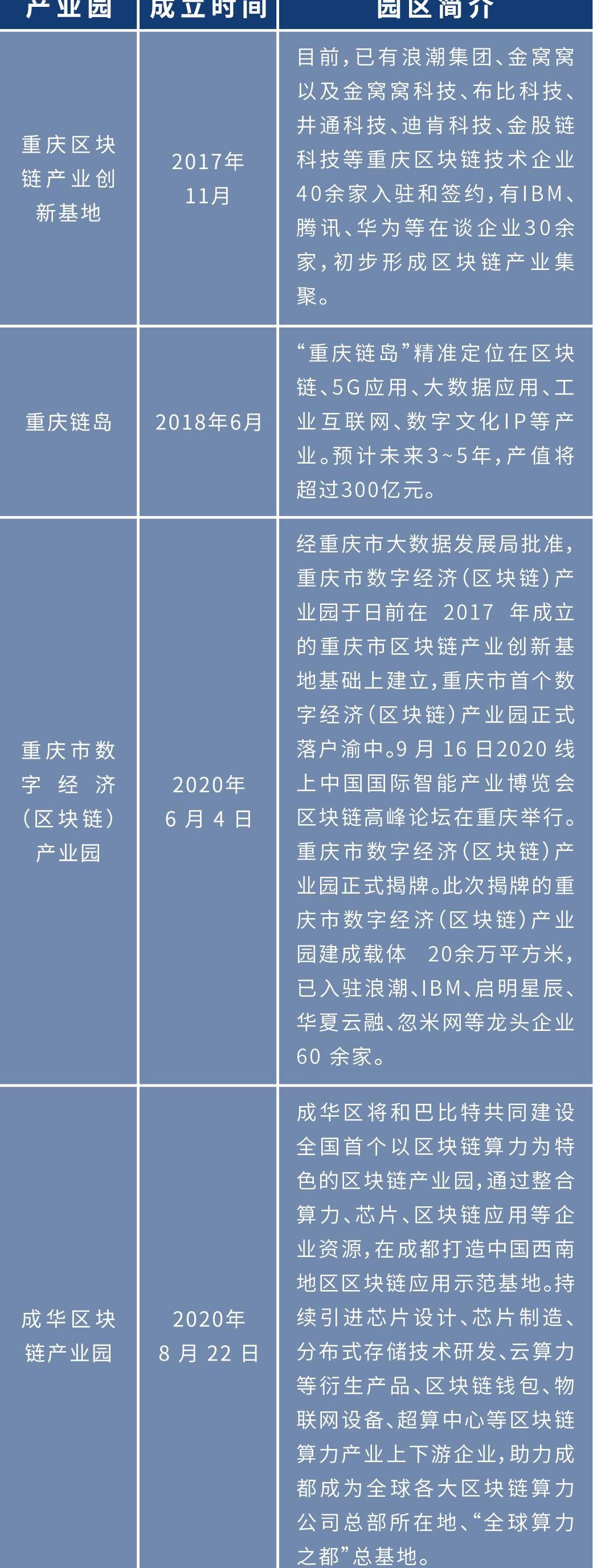 公開資料顯示,截至2020年12月末,全國各類區塊鏈產業園區已有四十余個。其中,近一半是由政府或有政府背景的社會組織主導或引導開發建設的區塊鏈產業園區或區塊鏈產業集聚載體,建立時間集中于2017年和2018年兩年;而相較2019年,2020年產業園區建設速度有所提升,且更有地區特色,注重打造自身品牌,在發展中更注重學界資源,也充分發揮了政策導向。