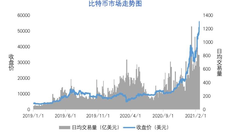 XRP/HKD-4.97%2018年8月,蘋果公司的市值突破萬億大關,成為美股第一個市值過萬億美元的企業,而彼時的比特幣,正從2018年初的巔峰迅速跌落至低估,價格被腰斬了一半,市值僅僅1,300億美元。然而在蟄伏了近兩年后,比特幣上演王者歸來---在近半年的時間里比特幣價格累積上漲了近4倍,由1萬美元漲至5萬美元,市值也在短時間內迅速攀升,在2021年2月19日突破萬億美元大關。