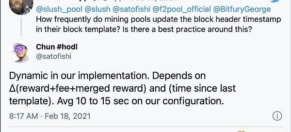 但是,我認為背后的答案更加復雜,因為礦工也有可能更新時間戳,這就牽涉到了研究特定ASIC應用的硬件或者固件。