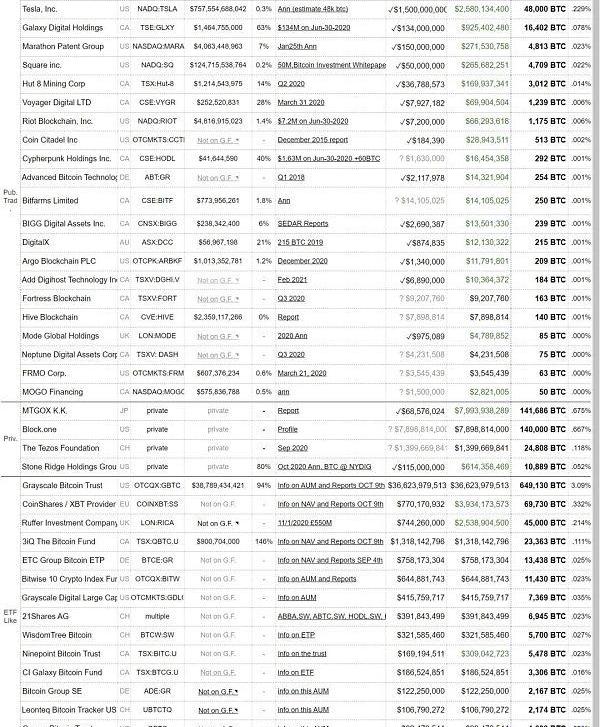 根據BitcoinTreasuries統計,截至2020年末,目前全球有15家上市公司自行購入并持有超7萬枚BTC,其中12家位于美國或加拿大。從渠道來看,傳統機構在美國參與比特幣的方式大致有三種:一是通過灰度旗下比特幣信托產品GBTC間接參與;二是通過芝加哥商品交易所參與期貨交易;三是通過合規交易所、場外機構大宗撮合等方式直接持有。