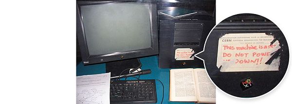 Web 1.0是去中心化的。它是由普通電腦驅動的。這是蒂姆?伯納斯?李(Tim Berners-Lee)的電腦照片。它上面有一張貼紙,紙上寫著不要關機。因為這臺電腦為互聯網提供了動力。