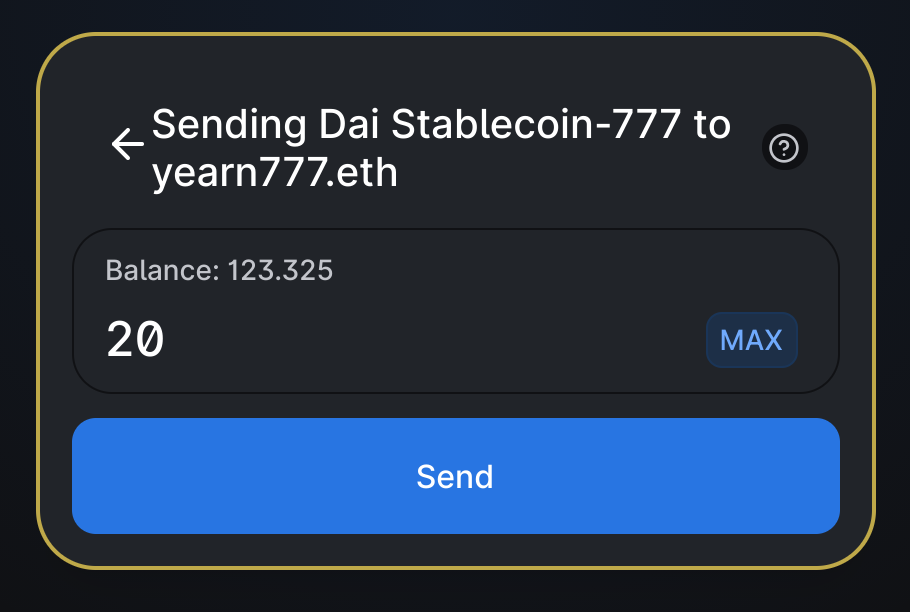 資產也可以通過各種協議(例如Uniswap,Balancer和Curve)添加到流動性池中。對于Uniswap池,這意味著你可以將Dai777發送到eth-wbtc.uniswap777.eth,然后Dai將被自動交換并向ETH / WBTC Uniswap資產對增加流動性。而如果通過標準Uniswap接口手動完成,則最多可能需要4筆交易。