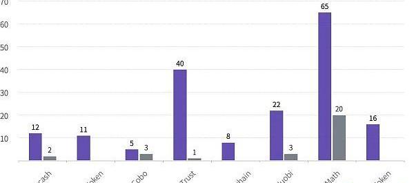 在數據統計時,各項錢包官網披露的公鏈數目較為模糊,TokenInsight采取枚舉審核的方式,逐一確認在其App中確切的支持公鏈數目。其中支持數目最多的MathWallet也是19年時候支持公鏈最全的錢包。