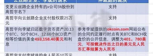 撤銷的核心原因,在于第3項,即參考okcoin.com網站公布的合同約定履行時點有關BTC和BCH收盤價的公開信息,高哲宇向李斌支付401,780美元。