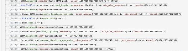 攻擊者從CurvesETH池中取出sETH,由于存入了大量的ETH,導致sETH的價格上升,此時攻擊者取出了約35000個sETH。