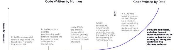 迄今為止,所有的軟件都是由人類編寫完成。而深度學習,作為人工智能的其中一種形式,利用數據寫軟件代碼。通過自動編寫程序、創建軟件,深度學習可以加快每一個行業的發展速度。