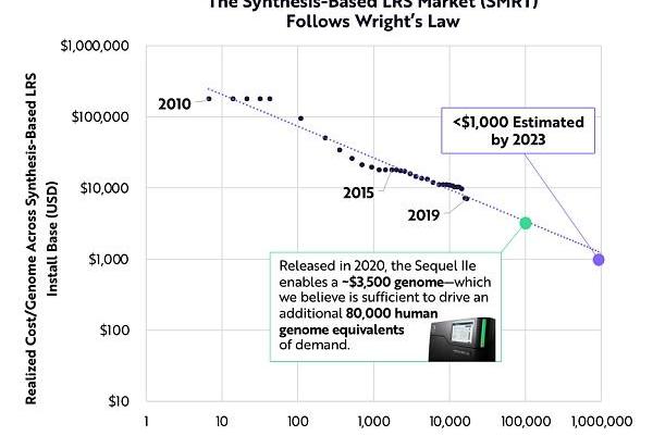ARK認為,由于較低的測序成本以及對高精度和完整結果的需求,市場對長讀測序的需求正觸及拐點。