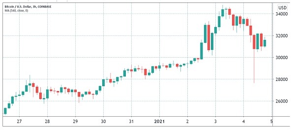 每次比特幣再創新高時,投資者都預計會出現某種形式的回調。盡管比特幣未能突破34500美元的阻力位,但還是從1月4日低于28000美元的低位迅速反彈。從財務角度,這一市場表現可能會使一些買家短暫驚慌,,但從背后看,這是一個非常看漲的信號。