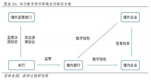 有所不同的是,在央行數字貨幣的語境下,沒有賬戶的概念,而是只有數字錢包的概念。以DC/EP為例,由于DC/EP采用“雙層運營體系”,因此境外企業可以注冊安裝由境內銀行開發的央行數字貨幣錢包,當需要進行跨境支付時,由境內銀行提供運營服務,直接將資金轉入對方錢包,而央行負責日常監管。同時,為了防止資金通過該體系外流,可以設置額度管理。當然,在此條件下,如果境內外企業不通過SWIFT進行資金歸集和集中調撥等跨境支付以及賬單收取,那么將擺脫對SWIFT的依賴。