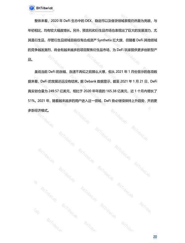 本報告從宏觀的角度分析了2020年DeFi市場的整體發展狀況,對DeFi生態的具體表現作了詳細梳理并對DeFi的未來發展進行了展望,以期讀者能夠全面了解DeFi行業的發展現狀以及未來DeFi可能演變的新趨勢。