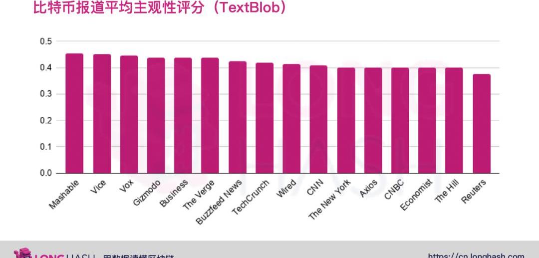 當然,這些結論也存在一定的限制。數據覆蓋的范圍雖大,但仍然是有限的。它只囊括了26家媒體,參考的時間范圍只有幾年,但還有更多的媒體在寫關于比特幣的文章。基于機器的情感分析遠非完美,而且還有其他自然語言處理工具,如果應用于這個相同的數據集,可能會產生與TextBlob和VADER不同的結果。