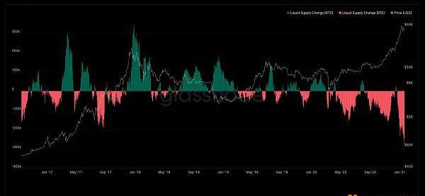 XRP/HKD-0.72%Glassnode2021年1月21日發推表示,比特幣正面臨數年來最大的流動性枯竭,不僅資金正在從交易所撤出,而且幣也在不斷轉移到巨鯨手中。