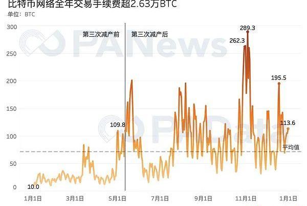 全年鏈上交易手續費總計超2.63萬BTC,幣本位較2019年增長約32.83%,美元本位較2019年增長約108.97%。