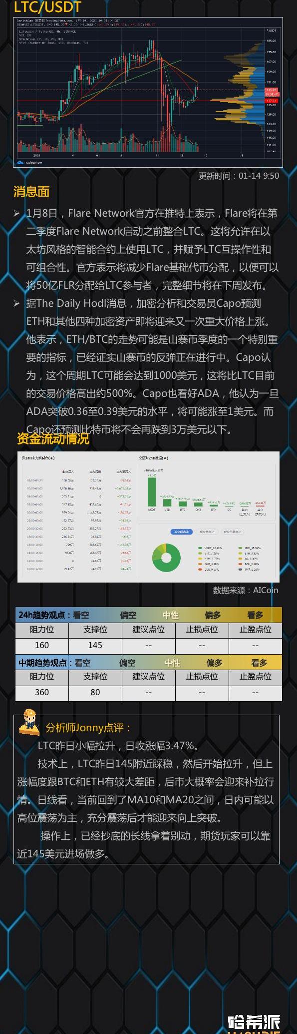 萊特幣(LTC)最新成交價格為2410.11元,最高價格為2449.01元,最低價格為2010.44元,24小時漲幅15.29%,成交量達62.98萬個LTC;