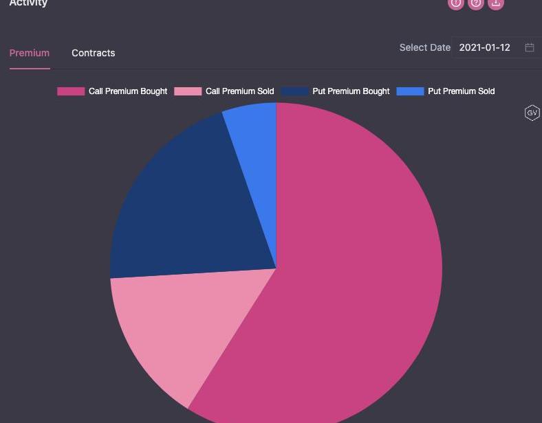 1月12日,Deribit交易所內超50%的權利金來自于賣出看漲期權交易,來源:gvol.io