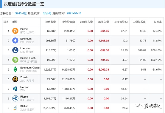 不容忽略的是,比特幣和以太坊也日漸被機構操控。從上表中可看出,截至1月11日,灰度在近7日拋售了261.95個比特幣和1608.92個以太坊,這也是近兩日比特幣大跌18%的重要原因。?