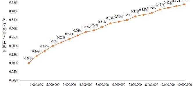 ETH2.0年通脹率隨ETH質押數量變