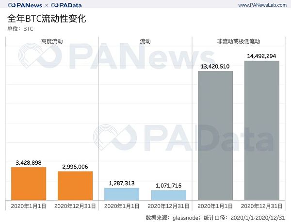 全年非流動或極低流動的BTC增長了約107.18萬枚。