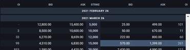 對比特幣礦工來說,期權的另外一個重要作用是防范市場的下行風險。為此可以采用ProtectivePut的交易策略。礦工在一個市場低價購買看跌期權。如果市場現貨價格跌倒這個價位,那么這個礦工至少可以在這個價位將自己持有的比特幣賣出,避免更大的損失。如果比特幣價格上行,那么他持有的比特幣就會增值。他持有的比特幣現貨和看跌期權的整體依然是能實現非常好的收益。譬如如圖四所示,2021年3月26日,執行價格在$15,000的看跌期權的價格是$1,399。礦工為了保證自己持有的一個比特幣能夠在這個價位賣出,他就可以支付$1,399來購買這個權力。萬一比特幣市場價格跌過$15,000,他就可以在這個價位將他的比特幣賣出。