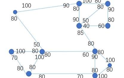 我們把一個支付網絡看作一個無向圖,每個圖中的節點代表一個PID,每條邊代表一個支付通道,其中每條邊在兩端節點各有一個存量。注意:我們默認每個支付通道內部總存量守恒,即由A,B組成的通道中,如果A有余額50,B有余額80,B在向A支付10元后,A有余額60,B有余額70。