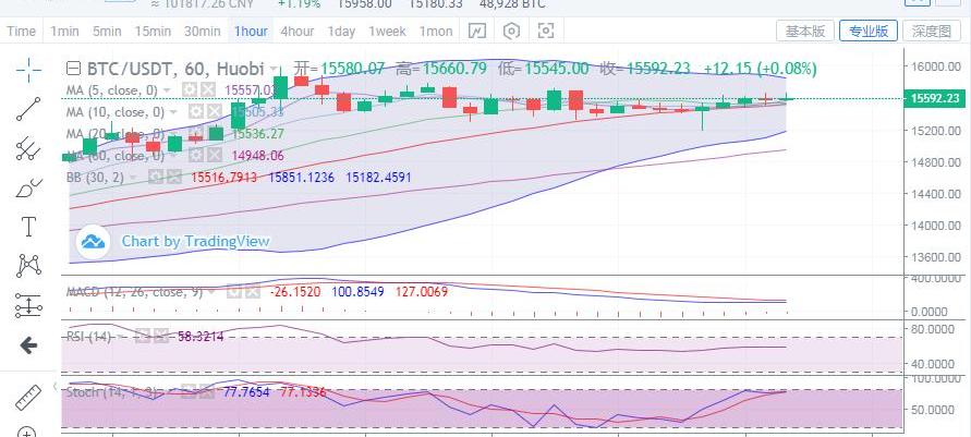 今日大餅上方還是關注16000的強壓制位,下方支撐先看一小時布林帶下軌15180-15200附近,其次是15000位置。多頭強盛的時刻,回調多單是順勢而為,中長線來說還是很穩的。短時在觸及上方16000強壓位附近的時候,空單也是可以穩健把握到100-200點左右利潤的。