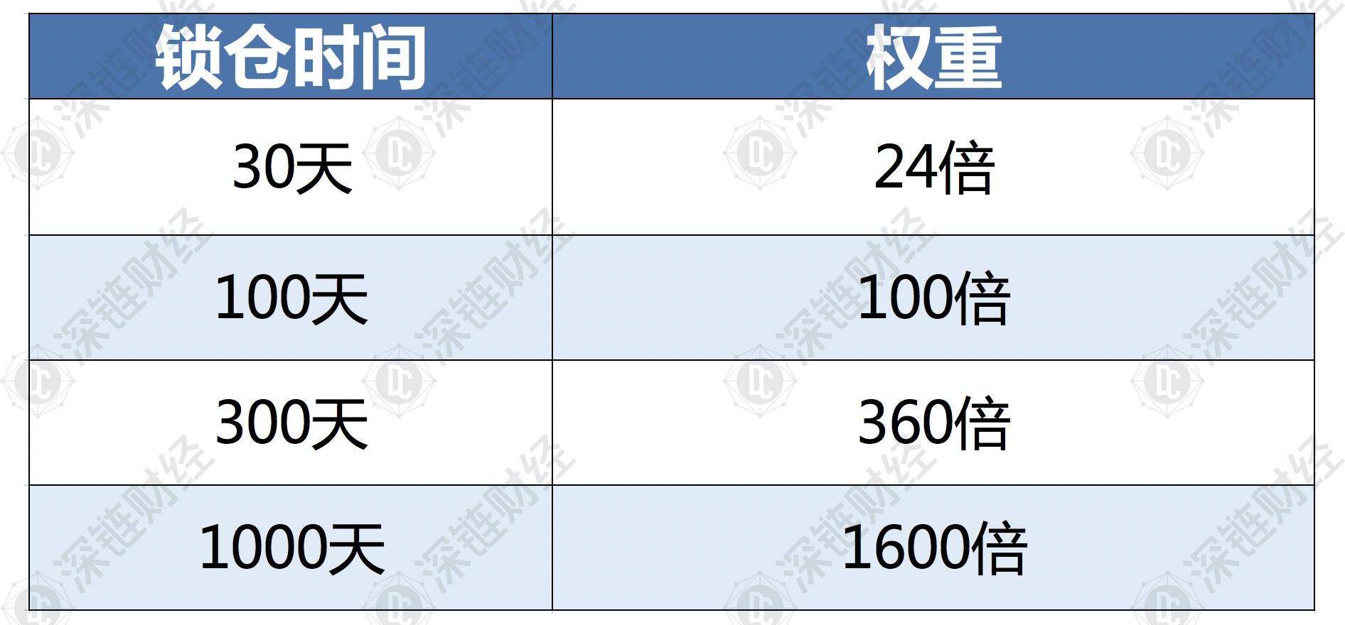 當然不同的鎖定期會有相應的權重獎勵,鎖定3個月為基準1,鎖定6個月權重為1.3,鎖定12個月為權重2.2,通過映射的權重只有0.2。最終這45億EDG的通過這種方式成功的被分配了出去。