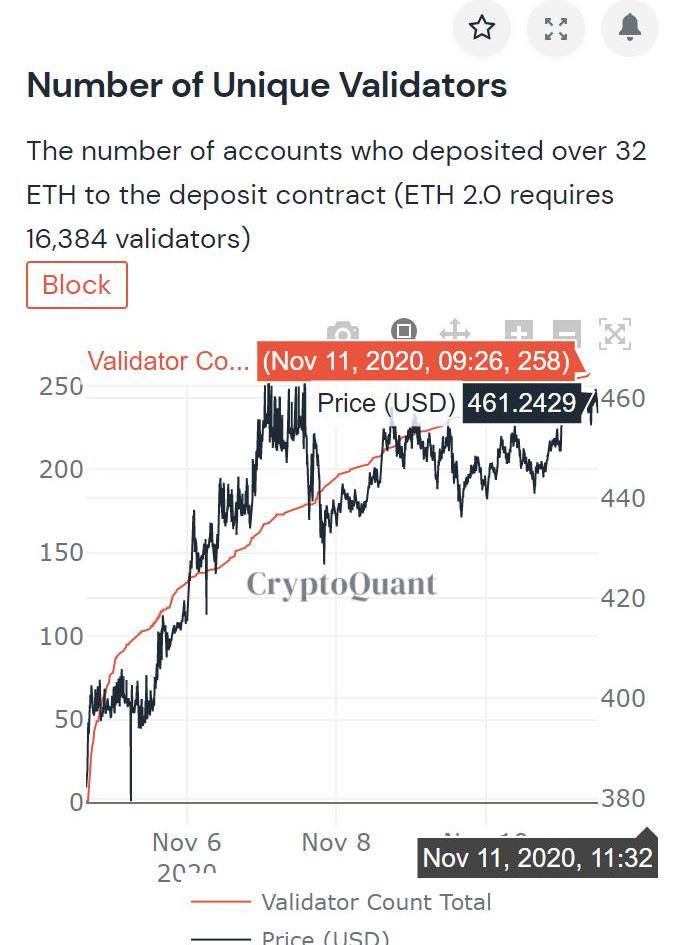 確實,相對于ETH2.0存款合約上線初期的幣價飆漲,和一天2萬多枚的質押量,現在ETH2.0的質押活動已經滯緩下來。ETH2.0創世啟動期為25天,6天過去了,ETH的質押進度才達到10%。截至撰稿時,獨立驗證者數量為258個,驗證者節點數量是1691個,距離2.0啟動所要求的16384個驗證人還有很大的差距。