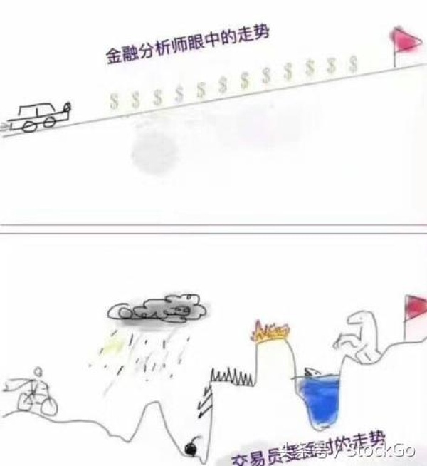 如上圖,在金融分析師眼里,理論價格應該由A直線到B,假設金融分析師是對的,市場也認可他的分析,但是專業投資者共識的標準差小,于是最后走勢如圖A。