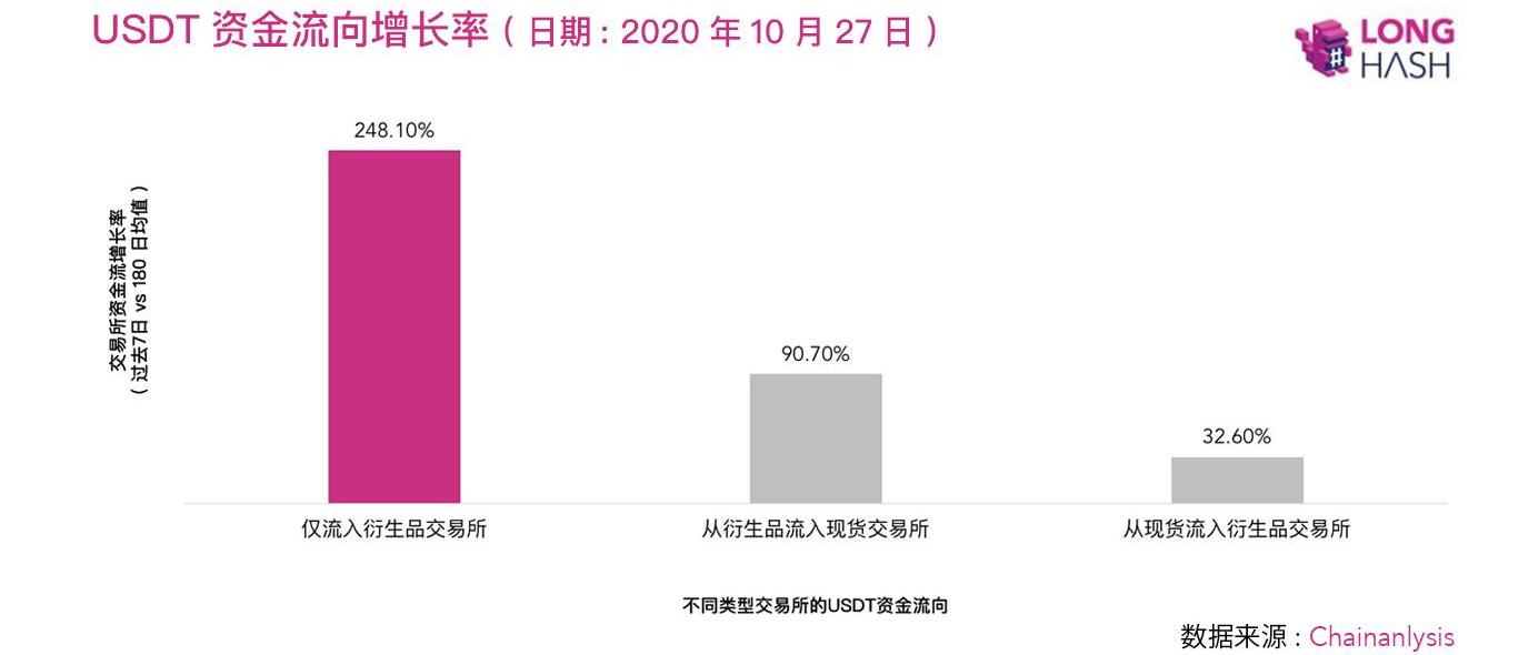 相較于不同類型交易平臺,近期USDT資金流入衍生品交易平臺的增幅最高,過去7日對比180日均值增長率為248%。