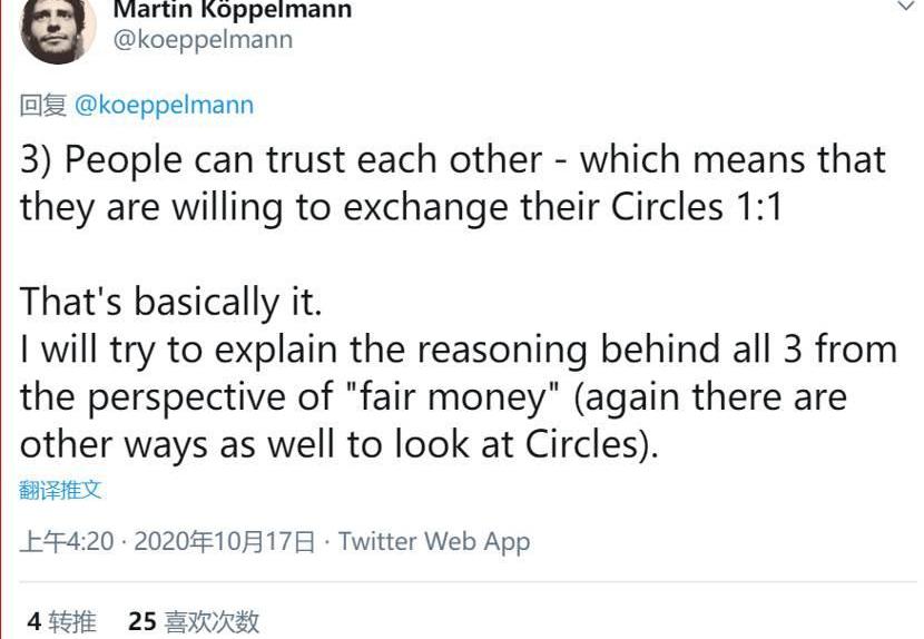 人們可以彼此信任,意味著他們可以自愿以1:1交換彼此的Circles