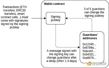 Argent錢包第一個、突破魔幻手機哦也是目前最流行的“智能合約錢包”,而社交恢復是其主要賣點之一,該錢包包括一個可以添加和刪除守護人的界面,為了防止被盜,錢包有一個每日限額:達到該金額的交易是即時的,而超過該金額的交易,需要守護人批準才能最終取款。