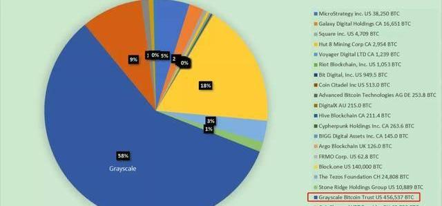 根據Bitcointreasuries.org的數據,灰度比特幣信托基金持有456,537枚比特幣,占上市公司持有的786,059枚比特幣的58%。