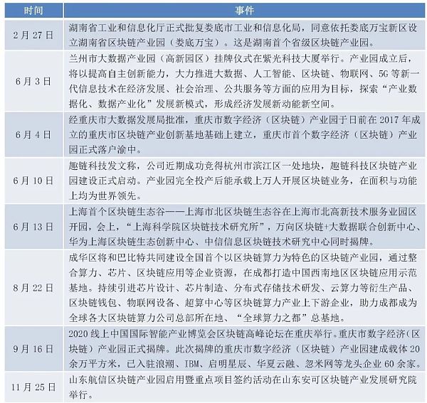 表3-3 2020年部分區塊鏈新產業園區相關事件