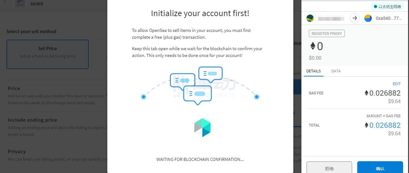 在OpenSea將商品上架出售不會收取Gas費,只會在售出后收取售出價格的2.5%作為手續費。不過,如果是第一次使用OpenSea,則需要先支付一筆Gas費來進行賬戶初始化。