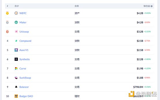DeFi市值及前十幣種價格本周漲跌幅,數據來源:CoinGecko