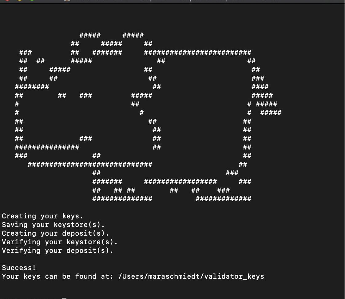 Launchpad將為你提供兩個選項來生成存款密鑰。你可以在此處找到操作系統的詳細說明:https://github.com/ethereum/eth2.0-deposit-cli/blob/master/README.md