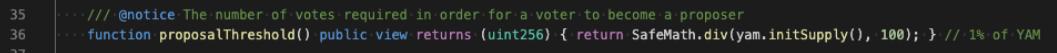 圖10.GovernorAlpha::proposalThreshold()?返回1%initSupply