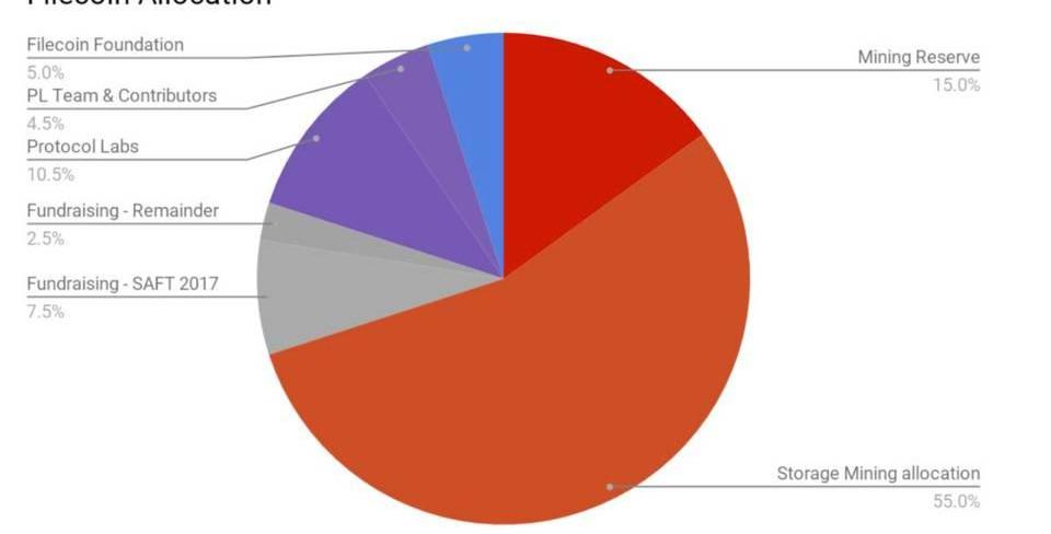 Filecoin代幣分配細則顯示:總量為20億枚,被稱作FIL_BASE,5%分配給Filecoin基金會,10%用于融資,15%分配給協議實驗室,70%分配給礦工。有15%的FIL_BASE,即21.4%的礦工獎勵,將被作為挖礦儲備金以在未來激勵檢索礦工和其他類型的礦工,具體使用方式以后由社區通過Filecoin改進提案共同決定。