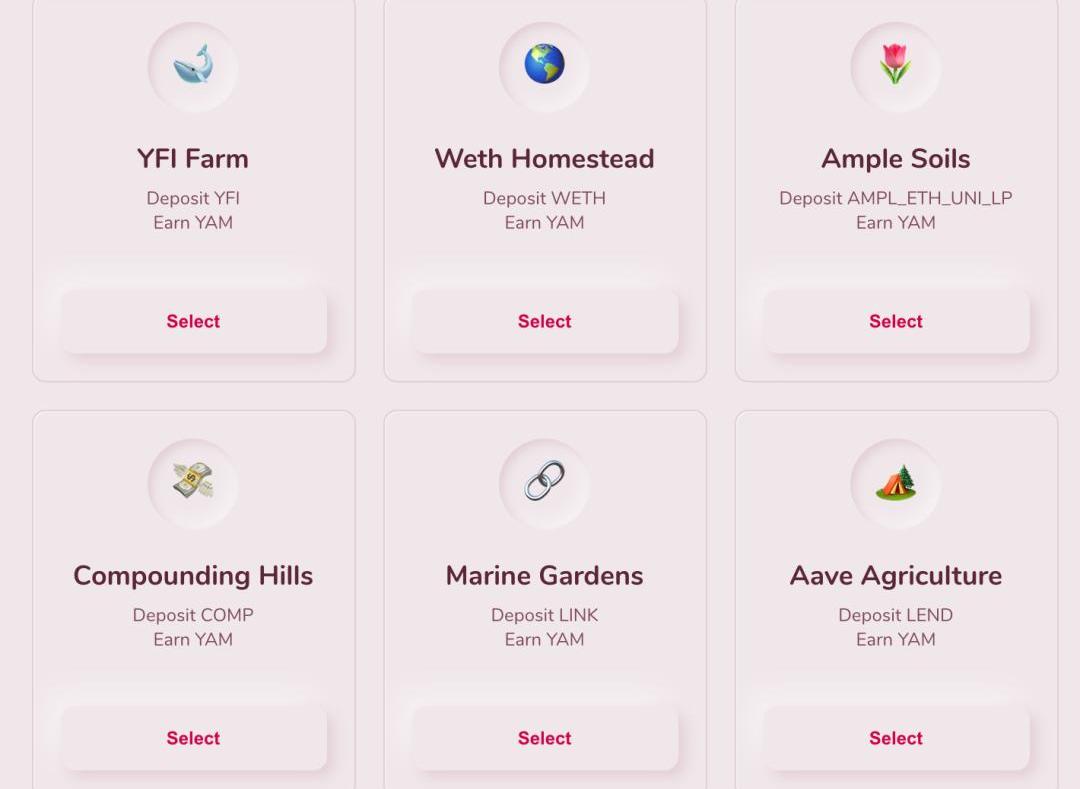 目前,YAM代幣平均分布在八個YAM權益池中,包括,COMP、LEND、LINK、MKR、SNX、WETH、YFI和ETH/APMLUniswapv2LP。