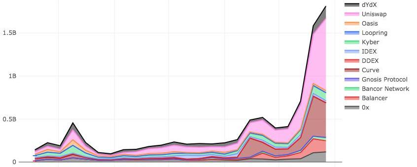 這樣的財富效應直接拉動了Uniswap的交易量。