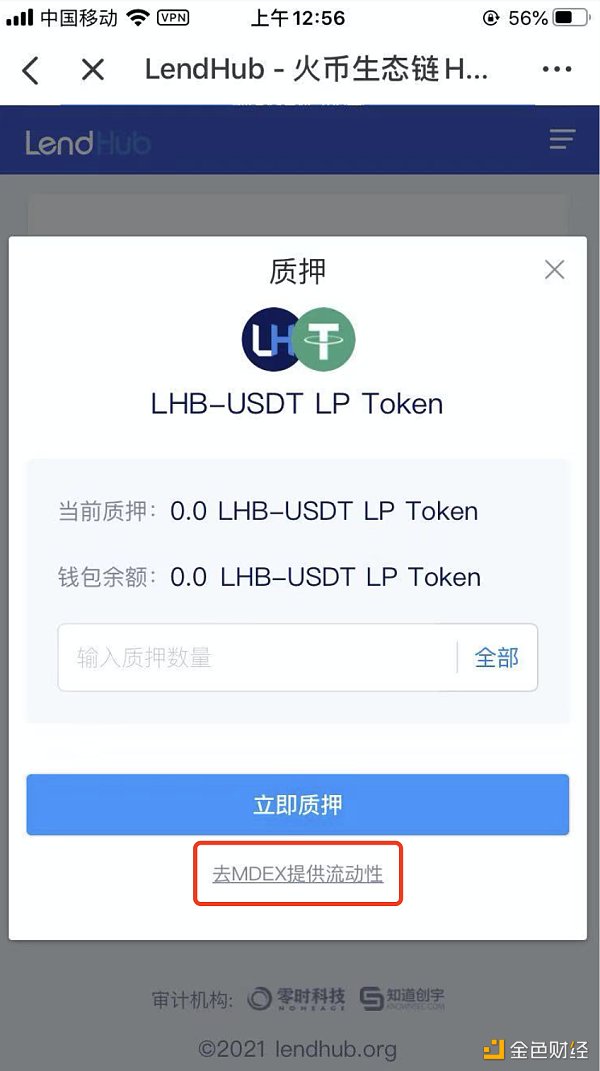 1、選以LHB-USDT的流動性質押挖礦為例,點擊[質押]