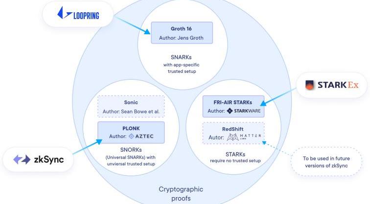 目前為止,已經有很多基于零知識證明的密碼學證明興起,其中最知名的莫過于SNARK和STARK。它們之間有著非常重要的聯系。