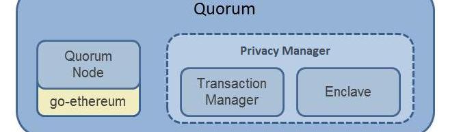 Quorum的交易管理器負責交易隱私。它存儲和允許訪問加密的交易數據,與其他參與者的交易管理器交換加密的有效負載,但不能訪問任何敏感的私鑰。它利用Enclave實現加密功能。交易管理器是平靜的/無狀態的,可以輕松實現負載平衡。