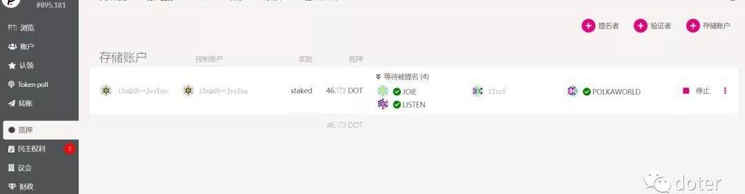 最后,在質押界面,你會看到賬戶狀態是等待被提名。
