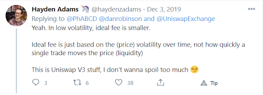 所有這些改進都會令V3在技術上非常復雜,Hayden Adams認為這樣會使分叉更加困難,從而對Uniswap有利。因為更多的流動性將留在其平臺上,而不是轉移到其他“克隆平臺”中。