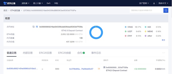 OKLink以太坊瀏覽器首頁展示全網算力、難度、建議Gas費用等數據,增加礦池排名、代幣列表等專業數據版塊,詳細展示各個礦池在各個時間段的爆塊占比,添加實時與預估的礦池排名。此外,還增加大額交易展示板塊,為用戶投資提供部分參考數據。