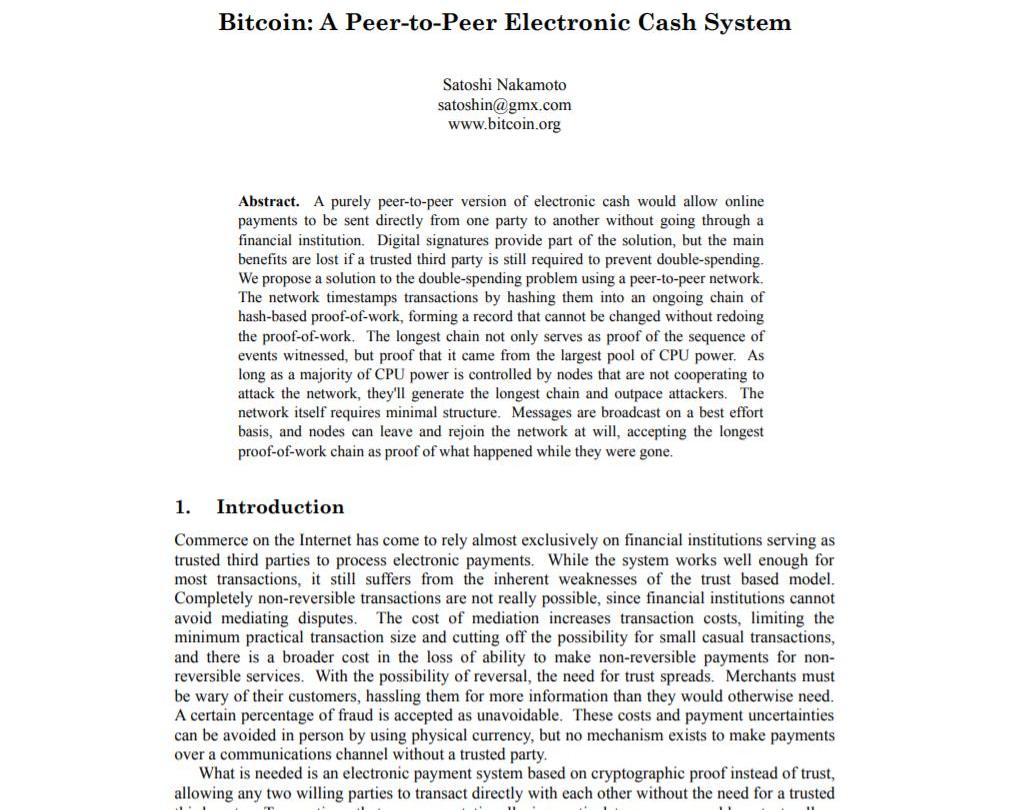 《比特幣:一種點對點的電子現金系統》,來源:bitcoin.org,2008-12